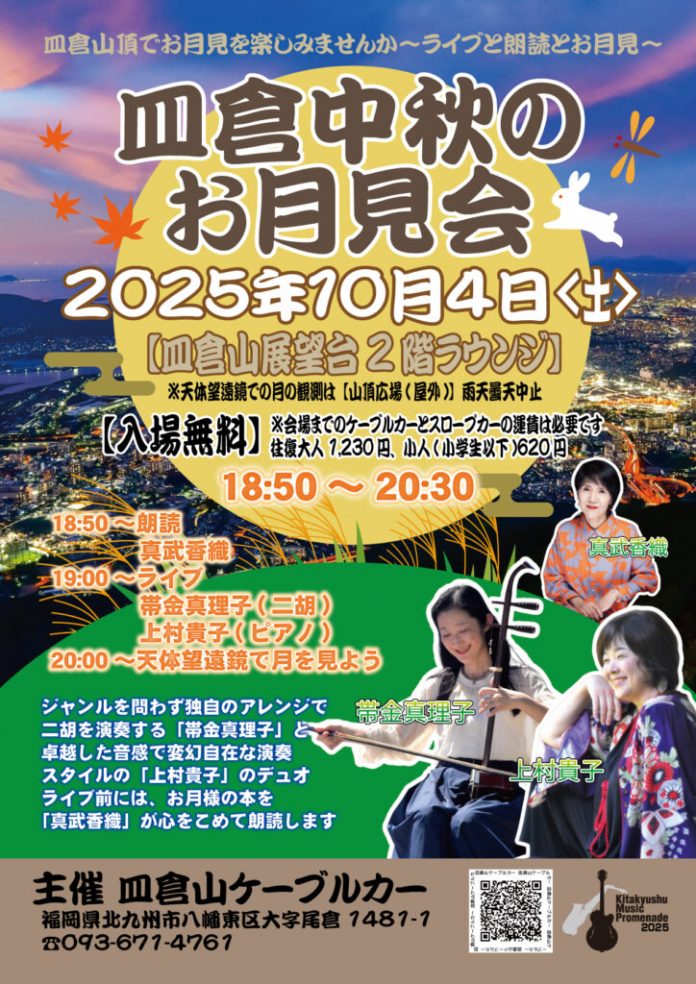 今回は、お月見しながら音楽を楽しむ「皿倉中秋のお月見会」をご紹介。