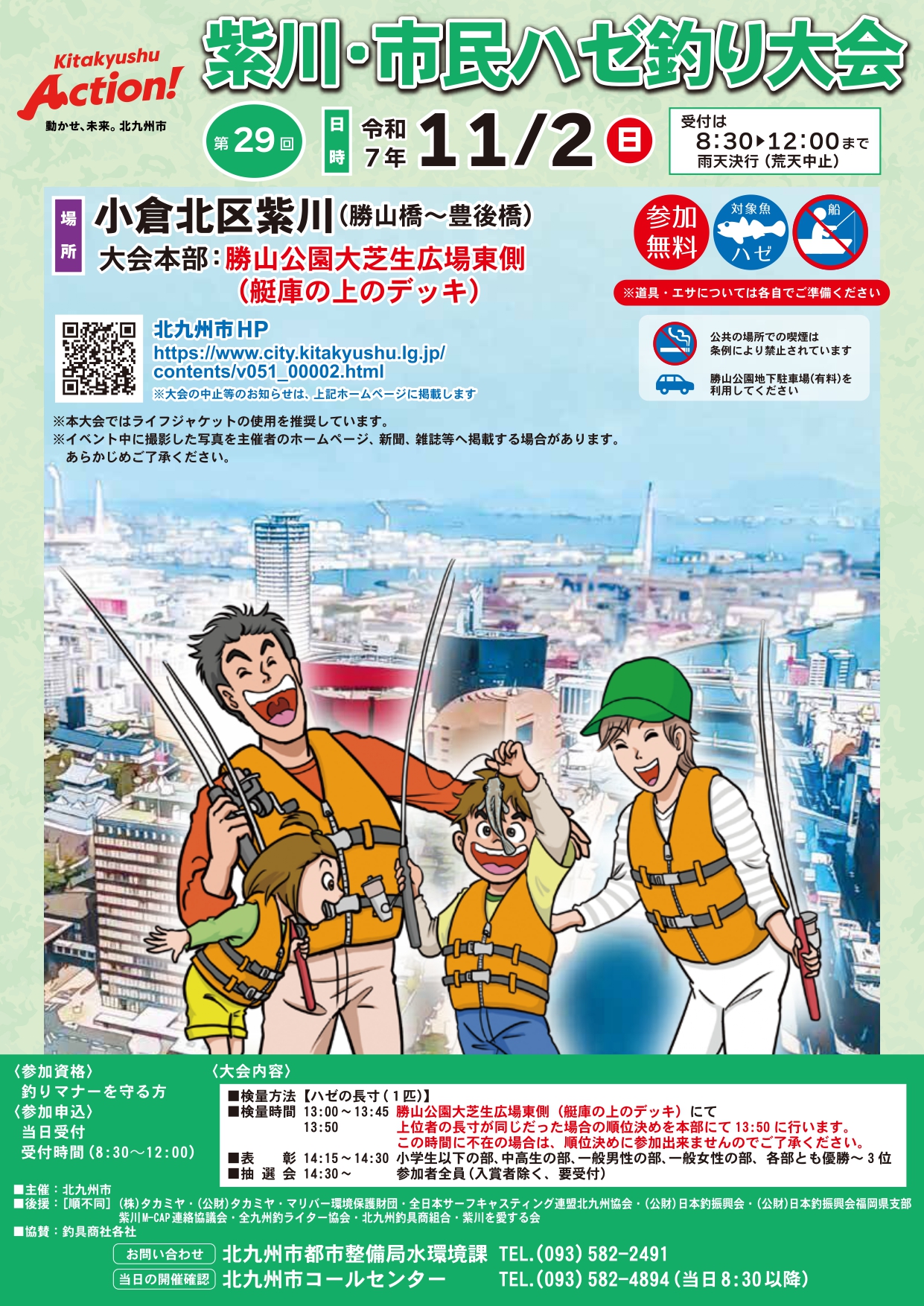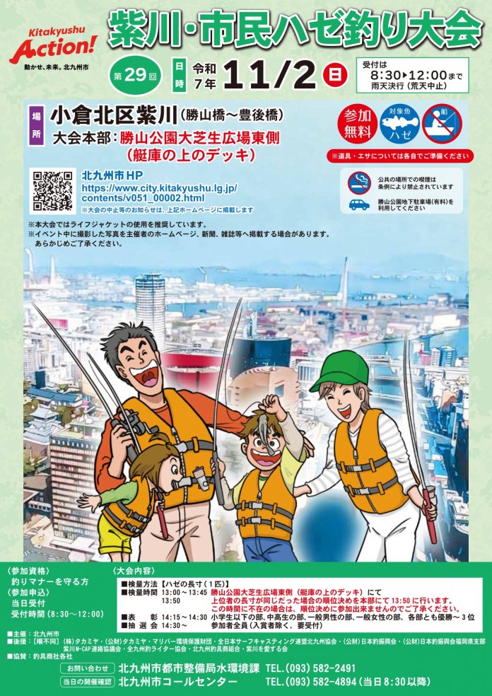 今年も紫川で、恒例のハゼ釣り大会が開催されます。