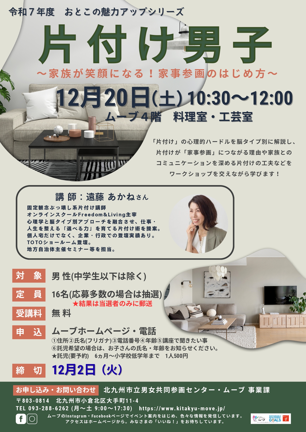 「解ってはおるけど、整理整頓は苦手…」という男子におススメの講座です♪