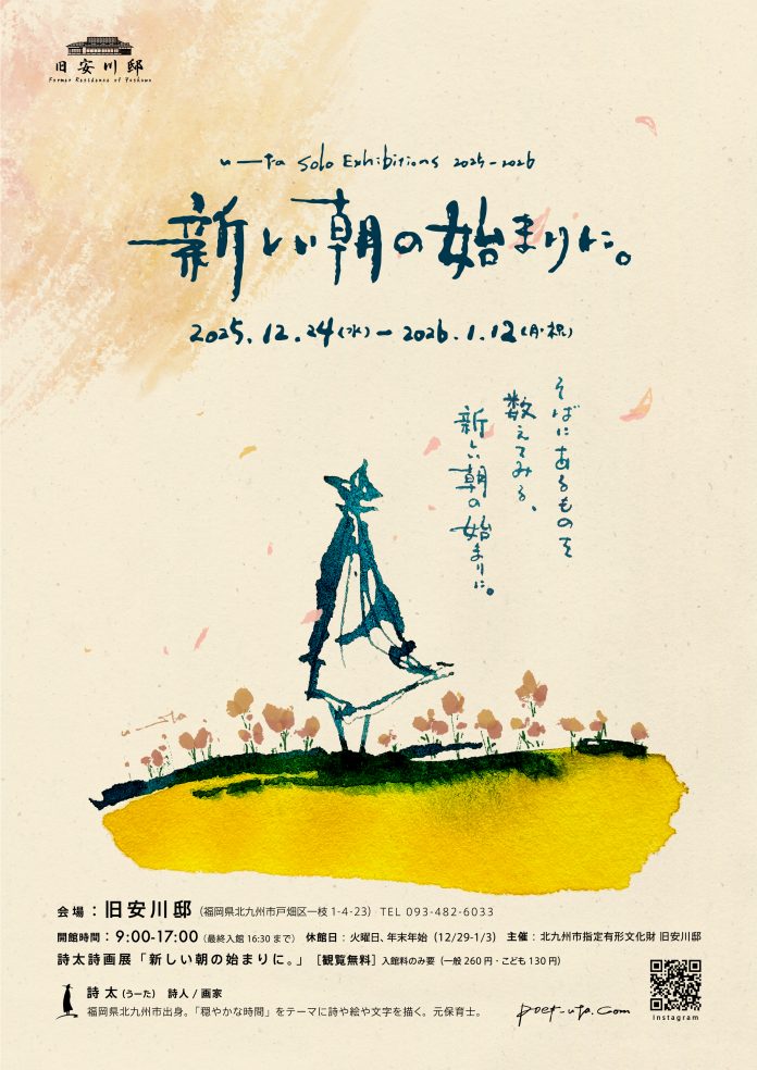 本展示では、北九州初展示の新作を多数含むアクリル画原画や手書き文字の作品など50点以上が展示されます。