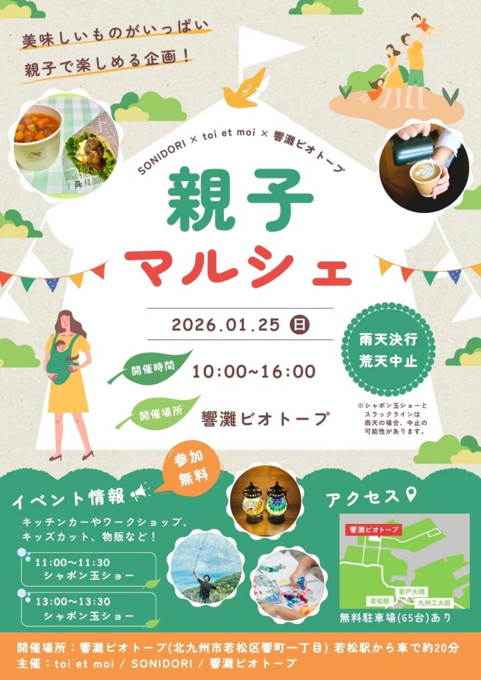 屋外ではスラックライン体験会やシャボン玉パフォーマンス、グルメやスイーツのキッチンカーもやってきます!