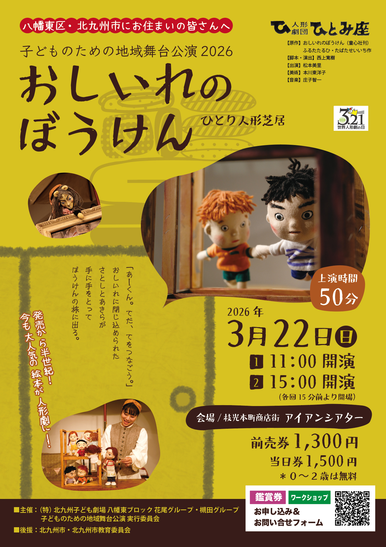 勇気・友情・成長。ドキドキの冒険を優しい語りのひとり人形劇でお楽しみください。