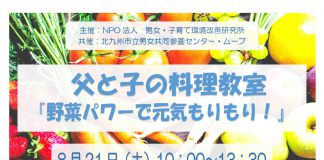 【北九州のイベント】(申込締切:7/21) 父と子の料理教室「野菜パワーで元気も...