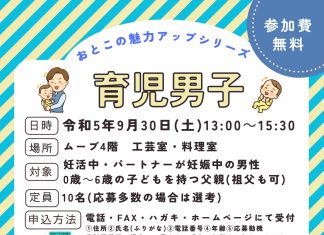 【北九州のイベント】(9/20申込締切) おとこの魅力アップシリーズ「育児男子」(小倉北区)