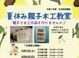【北九州のイベント】(7/5申込締切) 夏休み親子木工教室 (小倉北区)
