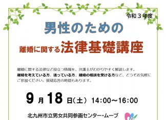 【北九州のイベント】(9/15申込締切) 男性のための離婚に関する法律基礎講座 (小倉北区)
