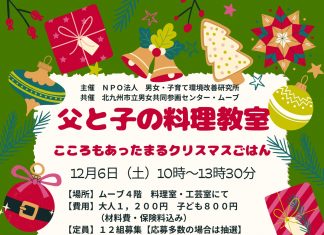 【北九州のイベント】(申込締切:11/3) 父と子の料理教室「こころもあったまるクリスマスごはん」(...
